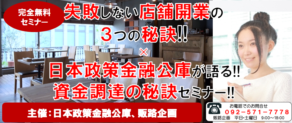演題:失敗しない店舗開業3つの秘訣!!×日本政策金融公庫が語る!!資金調達の秘訣セミナー